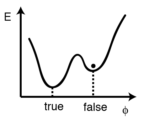 Příroda se však s člověkem příliš nemazlí - existuje totiž další teoretická možnost, která může zničit celý náš vesmír, a to mnohem dříve, než za dlouhé miliardy let. Dokonce je možné, že toto ničení již mohlo začít! Jak jsme si již řekli, naše vakuum ve skutečnosti není prázdné a obsahuje veliké množství energie. Nemáme žádnou záruku, že vakuum je dnes stabilní. Můžeme to opět zhruba přirovnat k vodě, která může mít několik skupenství – tuhý led, tekutou vodu a plynnou páru. I naše vakuum může mít více stavů než jen ten, ve kterém se nachází teď, a dnes se může nacházet pouze v přechodném stavu. Nejlépe si to představíme jako několik údolí vedle sebe – dnešní vakuum může existovat již více než 13 miliard let jenom díky tomu, že se nachází v jednom z takových (energetických) údolí, ve kterém si spokojeně hoví. Může však existovat ještě nižší údolí, přičemž přechodu vakua do tohoto nižšího údolí brání kopeček/bariéra mezi údolími, podobně jako turistovi brání v přechodu horský hřeben. Jestliže opravdu toto nižší údolí existuje, je pouze otázkou času, kdy se některá část vakua přehoupne přes kopeček/hřeben a strhne s sebou i celý zbytek vesmíru. Stačí aby se takové přehoupnutí vyskytlo pouze na kratičký okamžik v jednom jediném místě vakua kdekoliv ve vesmíru, a už nebude cesty zpět. Návrat do vyššího údolí už nebude možný, podobně jako řeka nikdy neteče směrem nahoru, a vakuum se rychlostí světla začne bortit a přeměňovat na svou podobu s nižší energií. Bude to mít za následek změnu fyzikálních konstant, jinými slovy všechno, co dnes ve vesmíru známe, bude zničeno, protože ani protony či elektrony nebudou moci existovat.